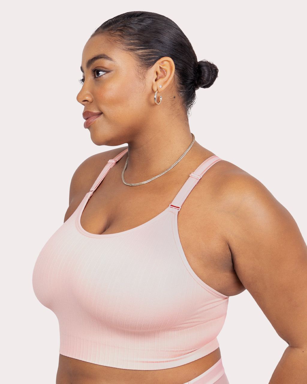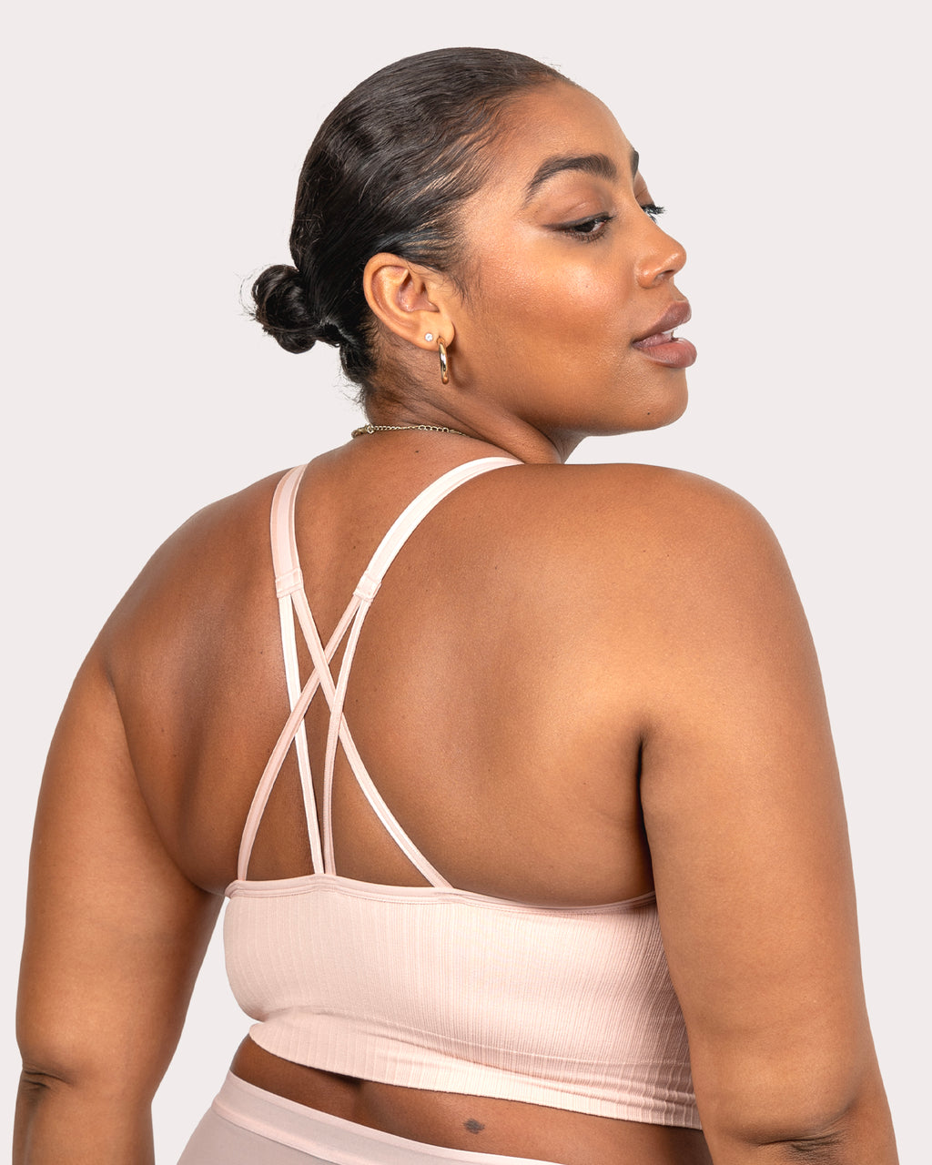 Add this to your collection of work from home bra options. Stay comfy in our first longline wire-free bra without compromising on shape, support, or style. Designed with 4-way stretch fabric and seamless technology, no elastics or underwires for extra all-day wear. Easy to pull over head, with a sporty outer textured rib, this longline wire-free bra was designed for lounging or low impact activities. Pair with your favorite lounge pants or with your favorite jeans. The strappy cross-back detail has sexy satin straps you might want to show off with a draped-back top.