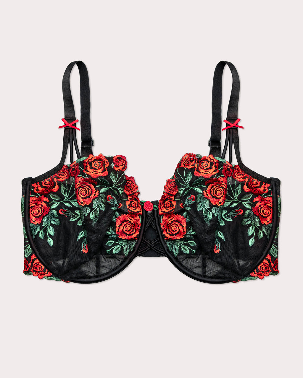 Unlined underwire full coverage balconette braMulticolor lush embroidery and luxe detailsSatin shine corset lace up details at center front & strapsFully Adjustable straps with corset luxe detailing welcomes additional support to cupsPower mesh wings offer back-smoothing and breathability Luxurious comfort and unmatched attention to detail