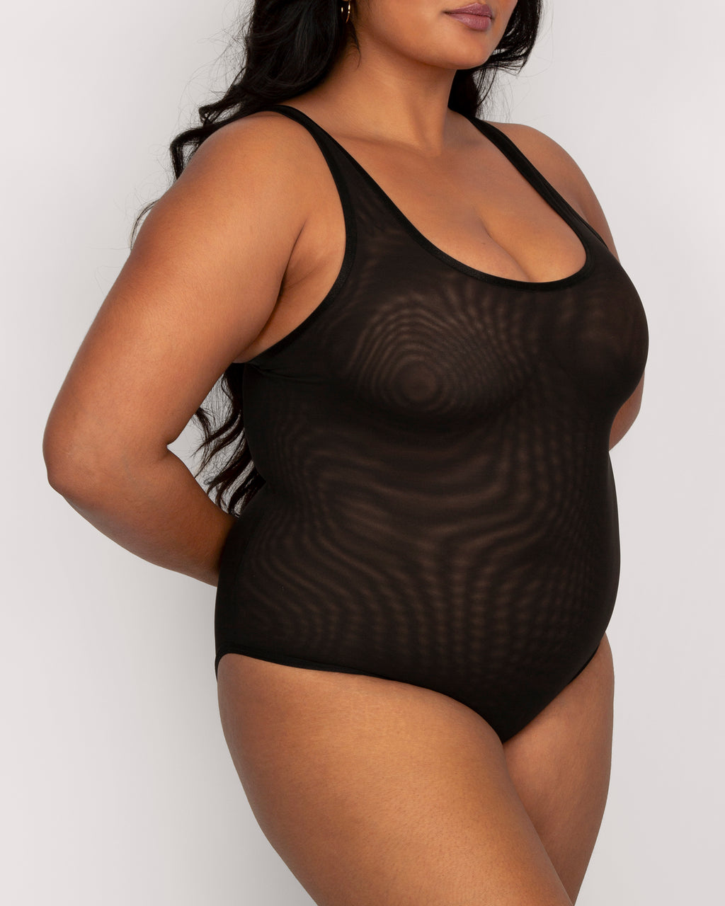 Versatile styling with elegant comfort, meet your new favorite bodysuit. Breathable mesh with 360 degrees of stretch that supports for easy all-day wear and comfort. This plus size sheer mesh bodysuit gives you sexy style & ultimate comfort in one. Smooth to the touch, sheer mesh has see-through front panel made of two layers of mesh in front & back. Bottom hook and eye adjustability makes this bodysuit perfect for all body types – including tall and petite. Easily transform the multi-way straps from classic to a racerback J-hook. Wear it beyond the bedroom for all seasons from warm summer nights to a layering piece with your favorite bra underneath in the fall. Try the innerwear as outwear trend by styling it your way!