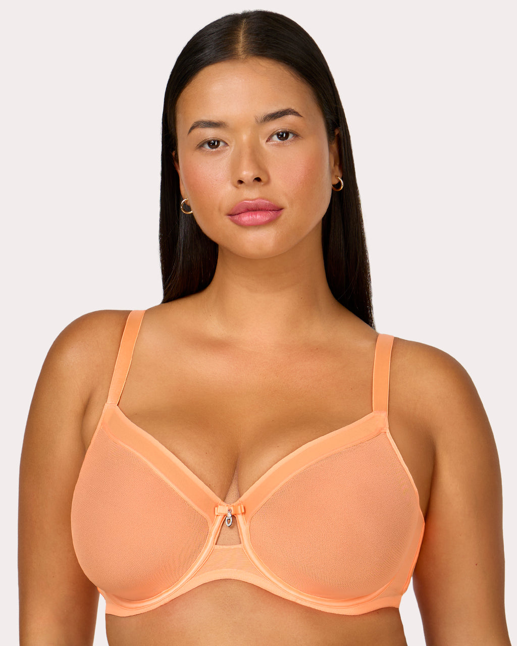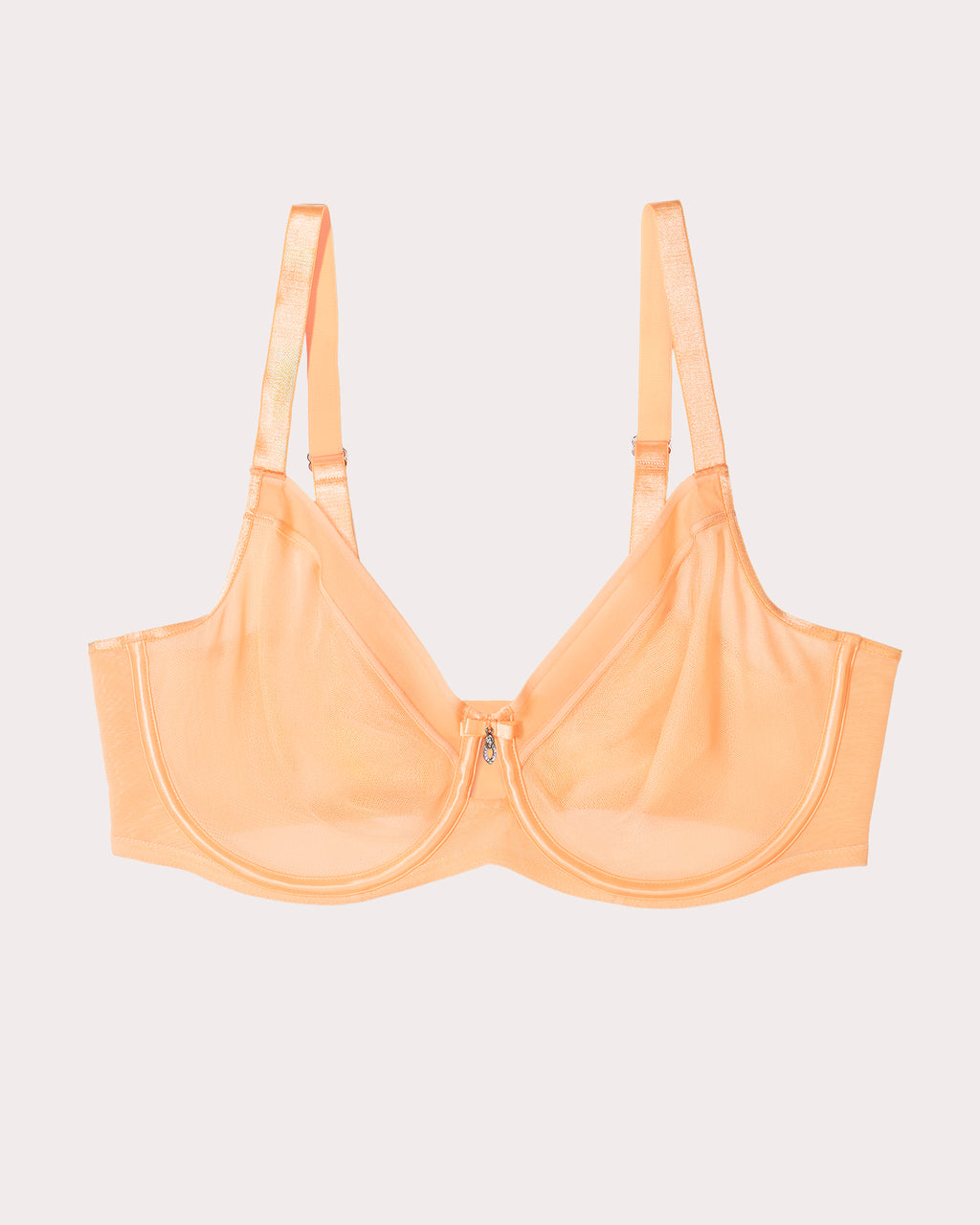 Sheer see-through unlined cups with two layers of meshSoft lightweight cups and give full coverageFeels like second skin. Novelty no dig elastic on cups to contour your natural bust shapeAiry yet supportive, this mesh bra is anchored with encased underwire support for a naturally lifted shapeFully adjustable straps and a ballet backLuxe power mesh wings offer back-smoothing and breathability Bling rhinestone jewel at center front Available in C-G & H cups and 34 - 46 bands