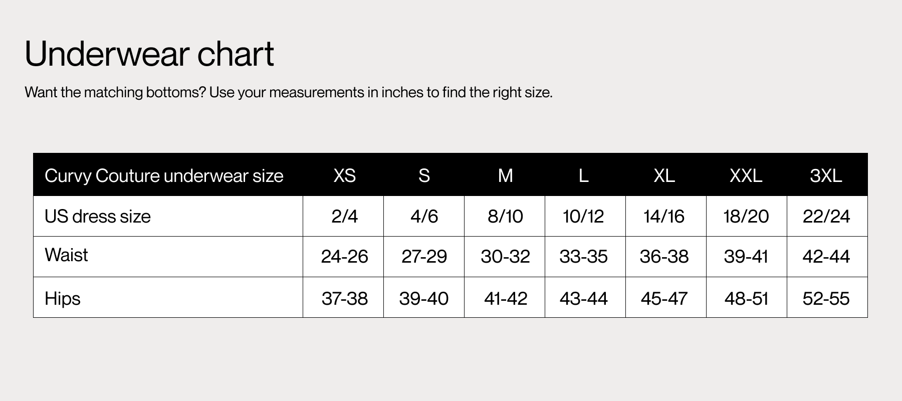 • Sorry, all panties are final sale and are not eligible for a refund or exchange. See below Panty Size Chart to choose your perfect size!