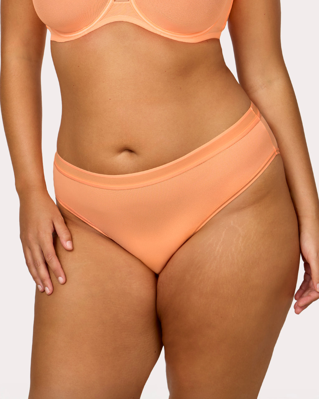 The perfect mix of comfy, cheeky and sexy is here! The Curvy Couture mesh high leg panty is the airiest, light, breathable panty we've ever designed. Made of sheer, stretch fabric that moves with you throughout the day. Our new stretch mesh panty is life changing, effortlessly sexy with ultimate comfort.