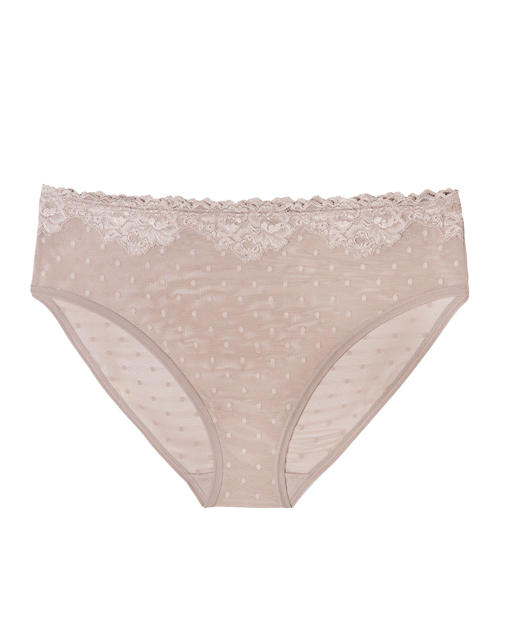 Playful textures of soft dot mesh on cups & floral scalloped lace along the waistbandLightweight and breathable airy mesh fabricHigh cut leg opening with moderate back coverage Medium rise sits below the belly button Panties have a cotton lined gusset Extended sizes available, including plus size panties up to 3XL. We now carry 6 sizes, S – 3XL