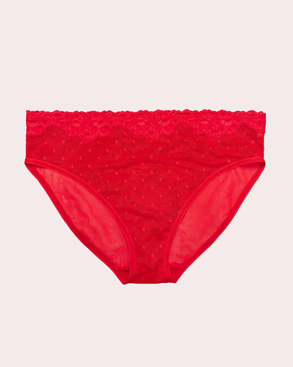 Playful textures of soft dot mesh on cups & floral scalloped lace along the waistbandLightweight and breathable airy mesh fabricHigh cut leg opening with moderate back coverage Medium rise sits below the belly button Panties have a cotton lined gusset Extended sizes available, including plus size panties up to 3XL. We now carry 6 sizes, S – 3XL