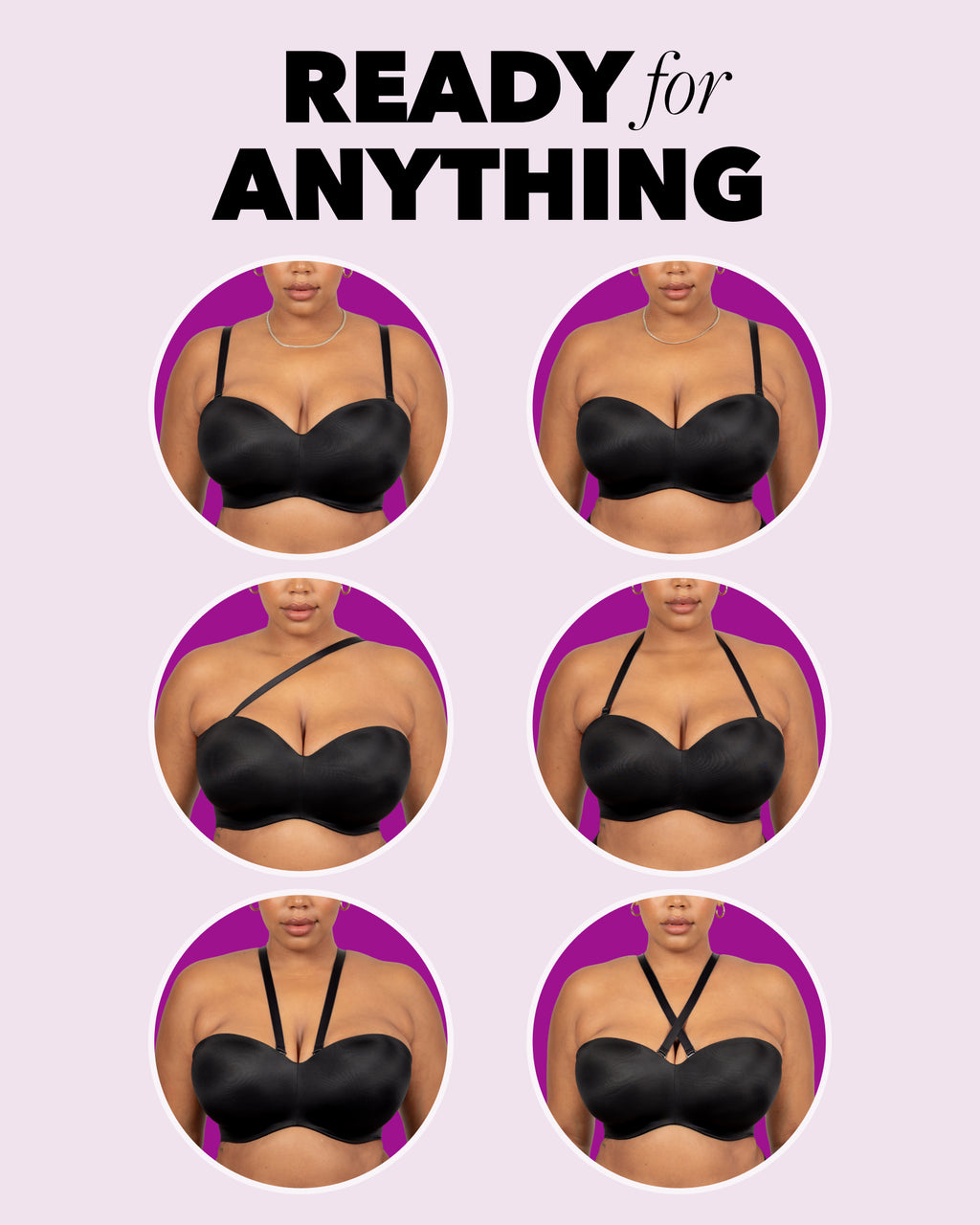 - Multiple ways to wear: strapless, halter, center halter, cross-front, cross-back, classic or one-strap
